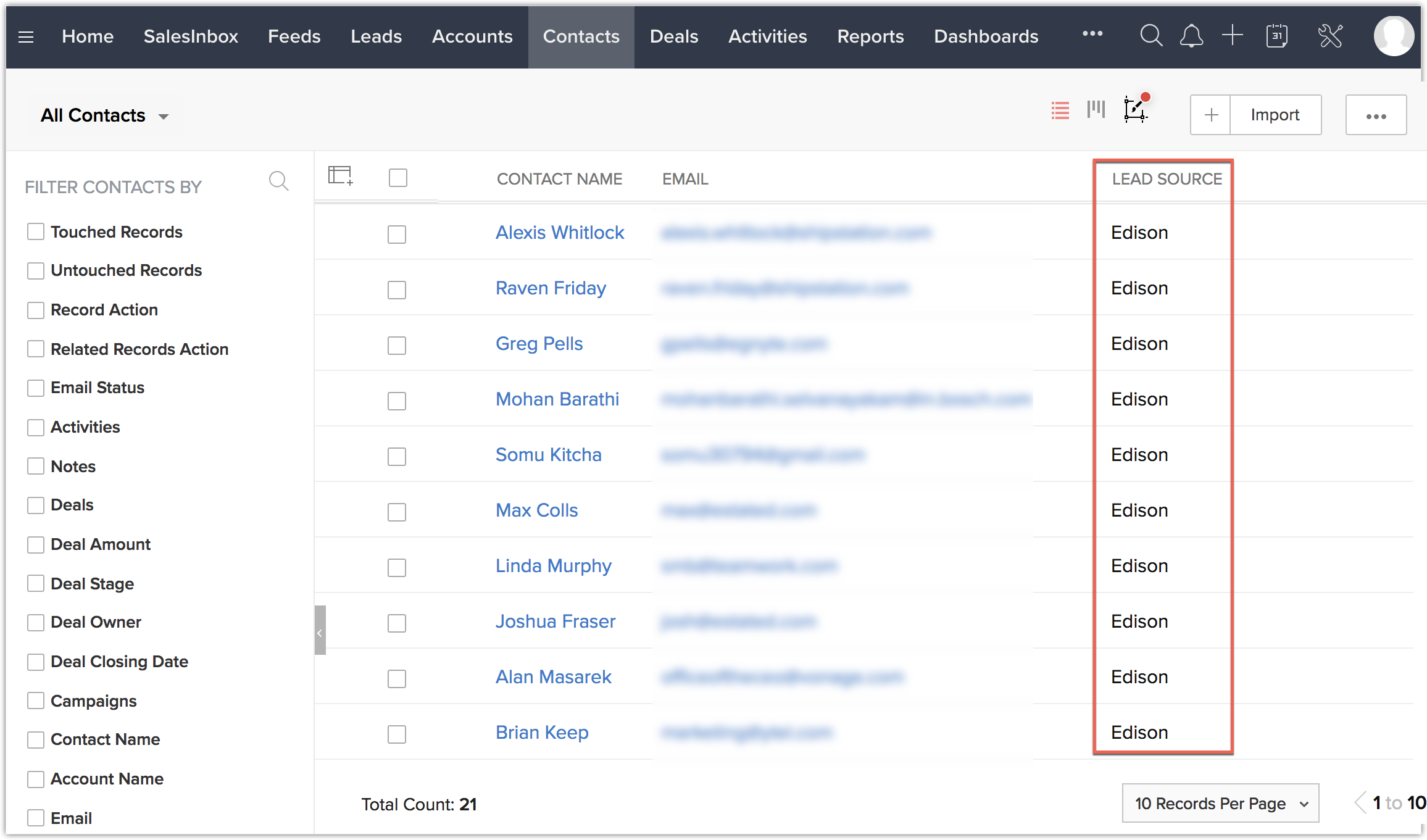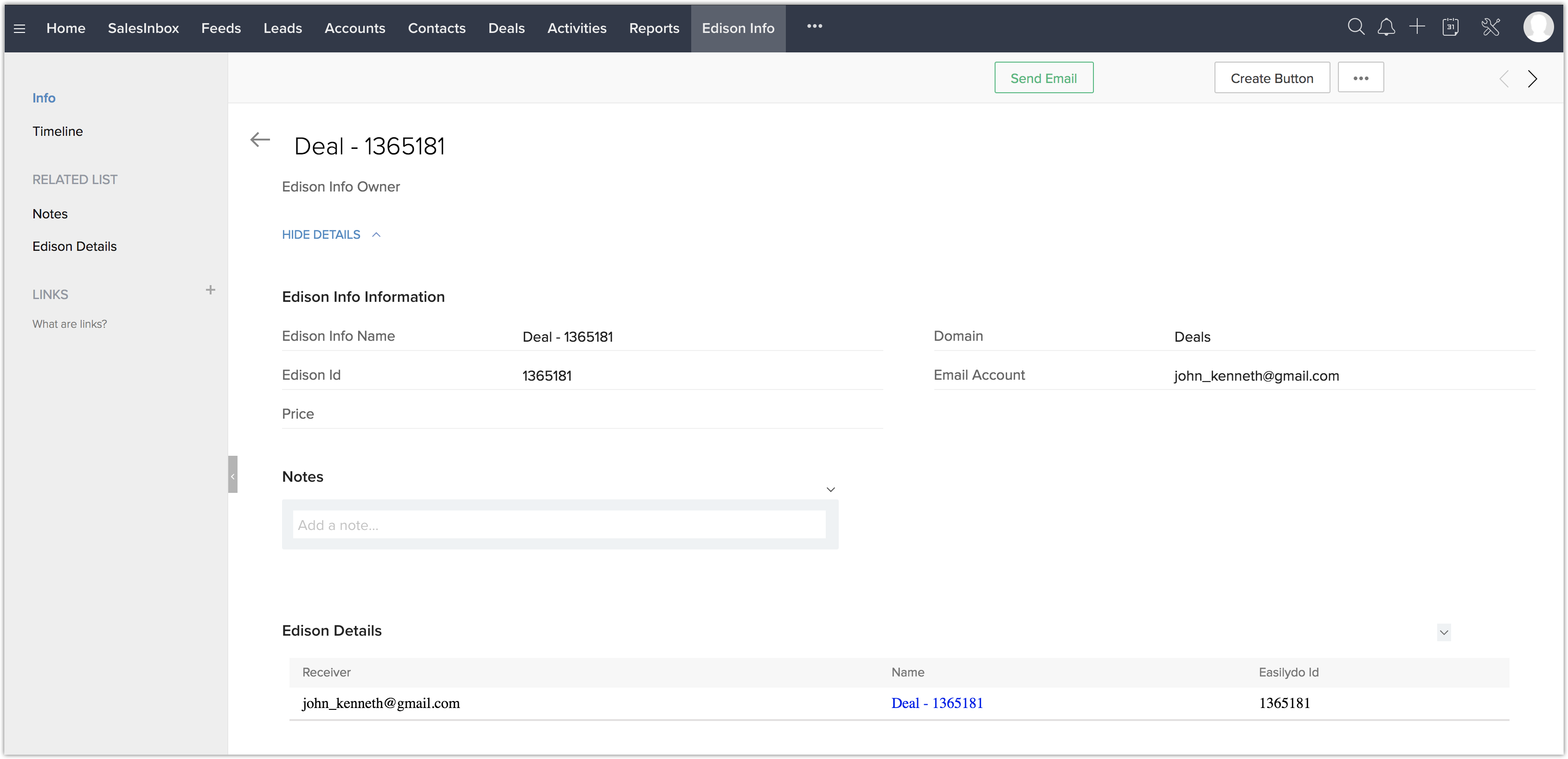 Edison's email parsing technology is now integrated with Zoho CRM. This lets you capture data such as contacts, purchases, and events from emails sent to your Gmail account and transfer it to Zoho CRM. Now, you can automatically sync important information in Gmail with contacts, deals, purchases, and events in your Zoho CRM account